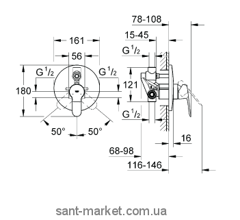 Змішувач прихований (вбудований) Grohe колекція BauEdge хром 29079000