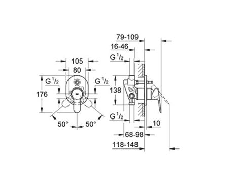 Змішувач прихований (вбудований) Grohe колекція Bau Edge хром 29039000