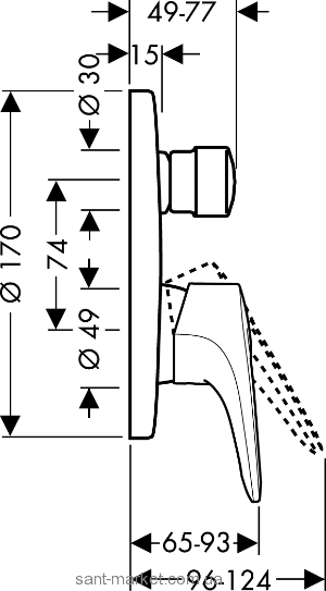 Змішувач прихований (вбудований) Hansgrohe колекція Metris Metropol E хром 14477000