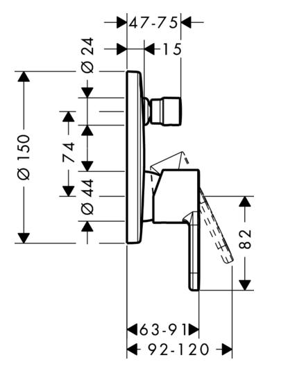 Змішувач прихований (вбудований) Hansgrohe колекція Metropol E матовий хром 14465880