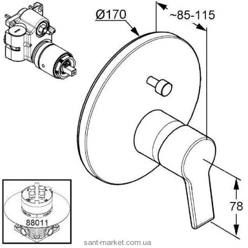 Додатково-Зовнішня монтажна частина для KLUDI FLEXX.BOXX 88011, з обмежувачем гарячої води, автоматичне перемикання ванна-душ, захист від зворотного струму води
