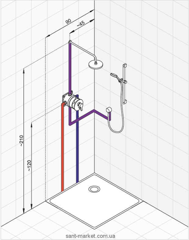 Функціональний елемент із керамічним картриджем з обмежувачем гарячої води. Автоматичне перемикання душ/ванна. Клас шуму I.