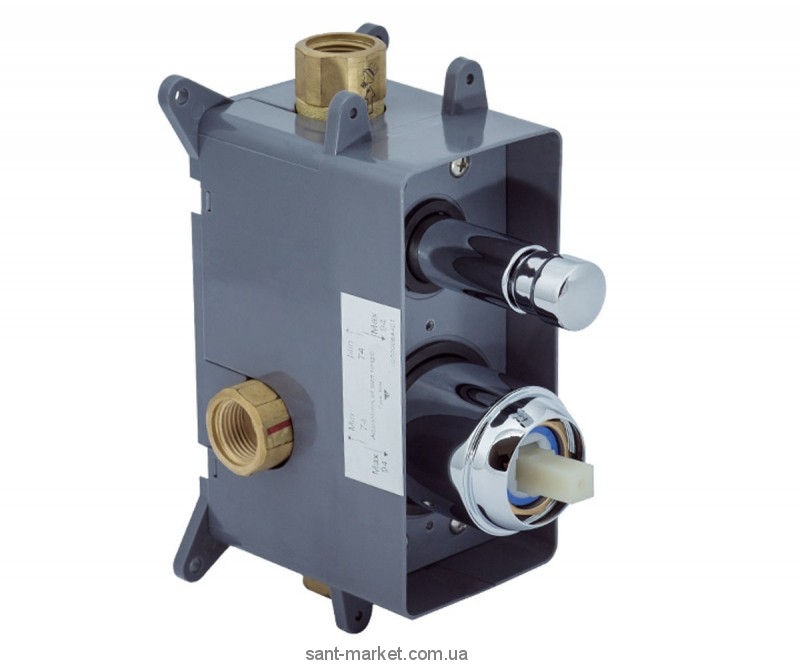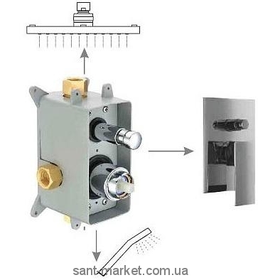 Двопозиційний змішувач прихованого монтажу з вбудованим блоком управління "I-Box", матеріал: хромована латунь, форма квадрат. Розміри накладки: 165х110мм.