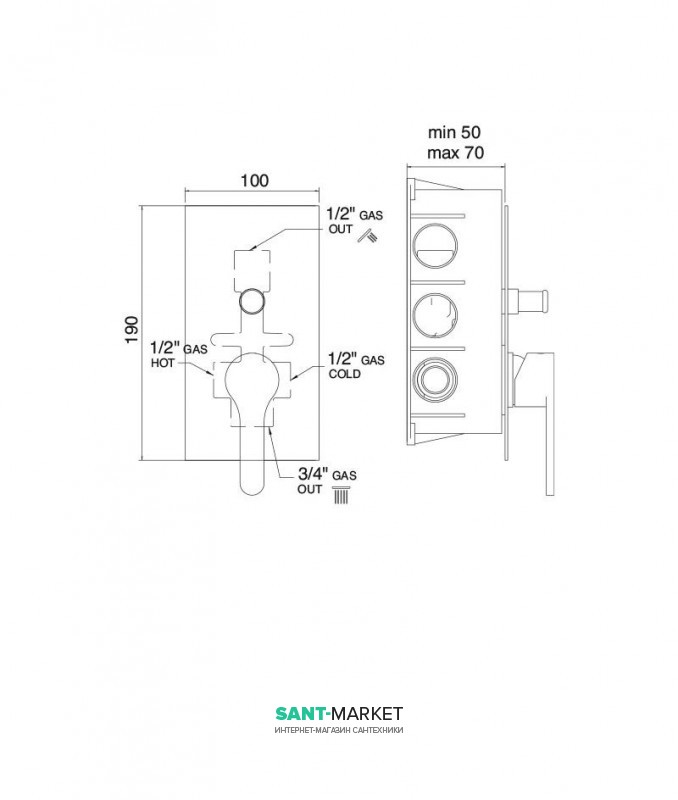 Змішувач прихований (вбудований) Treemme колекція Klab хром 2749CС03