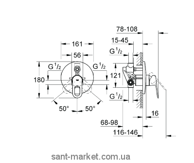 Змішувач прихований (вбудований) змішувач Grohe колекція Bau Loop хром 29081000