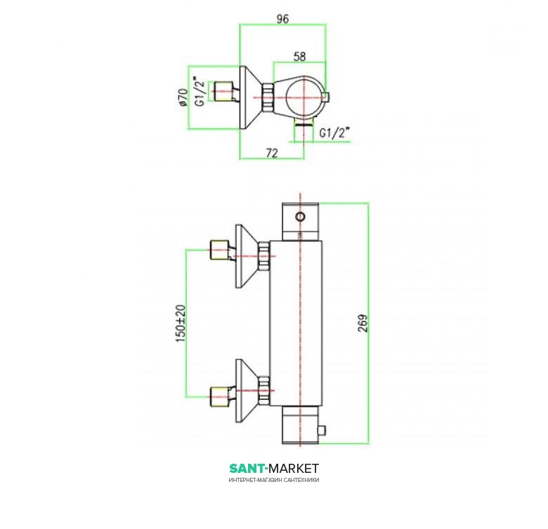 Змішувач термостат для душа Fiore X-TERMO хром 31CR0970