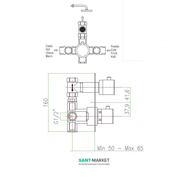 Змішувач термостат для душу Fiore X-TERMO хром 31CR0990