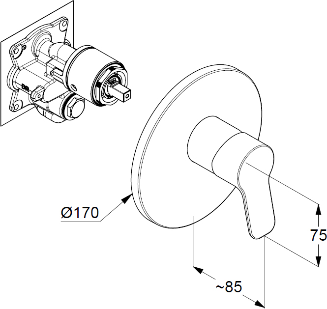 1) Змішувач вбудовується для ванни і душа Kludi Pure & Easy змішувач (зовнішня частина)