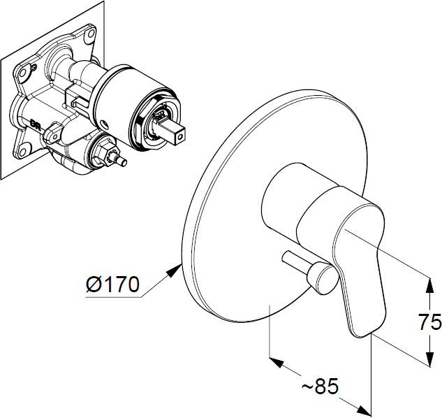 1) Змішувач вбудовується для ванни і душа Kludi Pure & Easy змішувач (зовнішня частина)