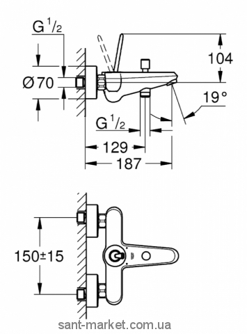 Переключення ванна/руш - важіль напівавтоматичний. Керамічний картридж Фіксований вилив. Вбудований зворотний клапан для захисту від зворотного потоку. GROHE SilkMove® Joystick cartridge. GROHE StarLight® хромована поверхня.