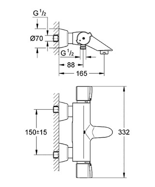 Змішувач з термостатом двухвентильний для ванни Grohe колекція Grohtherm 2000 хром 34202000