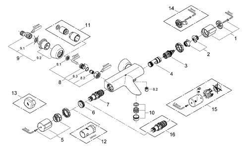 - GROHE TurboStat® вбудований термоелемент вбудований стопор змішаної води