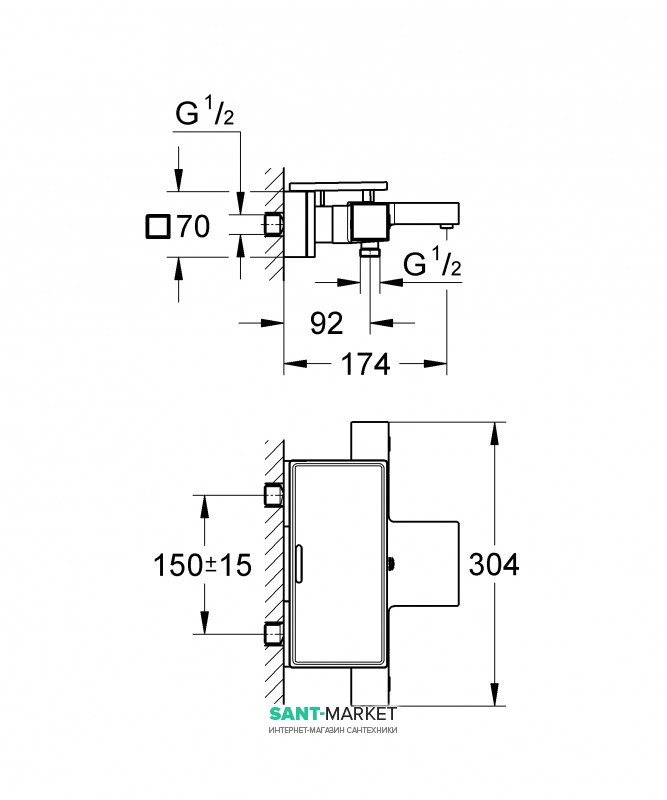 Поспішайте купити Змішувач з термостатом двухвентильний для ванни Grohe Grohtherm Cube з поличкою хром 34502000 за акційною ціною.
