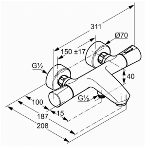 Змішувач з термостатом двухвентильний для ванни Kludi колекція Zenta чорний 351018638