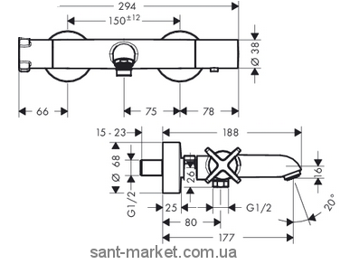 Змішувач з термостатом двухвентильний Hansgrohe колекція Citterio E хром 36140000