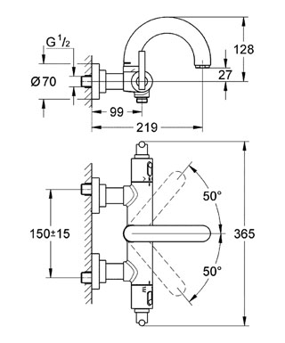 Змішувач з термостатом двухвентильний з коротким виливом Grohe колекція Atrio хром 34062000