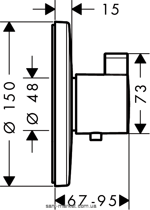 Змішувач з термостатом прихований (вбудований) Hansgrohe колекція Ecostat S хром 15756000