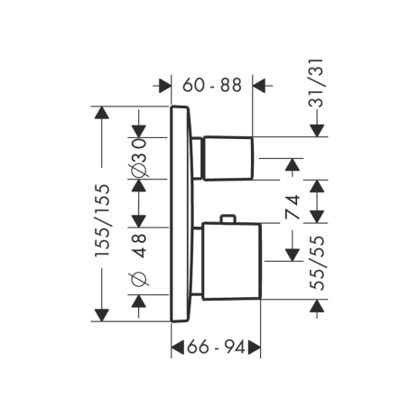 Змішувач з термостатом прихований (вбудований) Hansgrohe колекція PuraVida хром / білий 15775400
