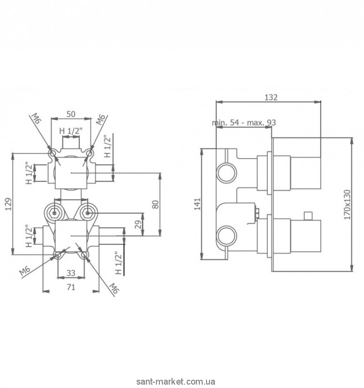 Змішувач з термостатом прихований (вбудований) GRB колекція Kala хром 50120520