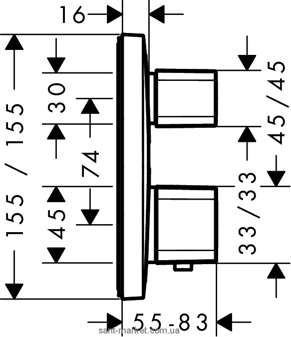 Змішувач з термостатом прихований (вбудований) Hansgrohe колекція Ecostat E хром 15708000