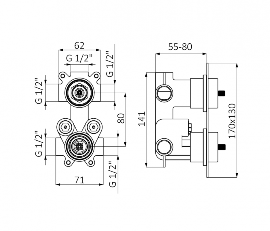 Змішувач з термостатом прихований (вбудований) GRB Kala Black чорний 60120601