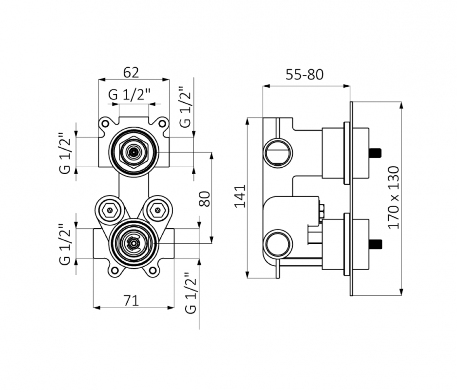 Змішувач з термостатом прихований (вбудований) GRB Kala хром 50130520