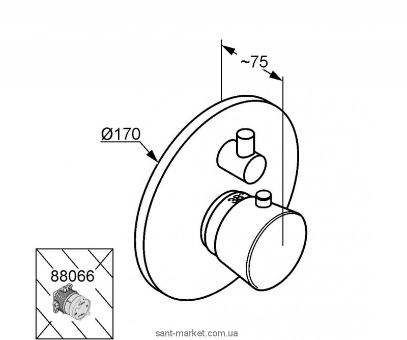 //sant-market.ua/kludi-vstraivaemiy-blok-dn-20-termostata-7937"> Kludi вбудовується блок DN 20 термостата 88066 - вбудована частина змішувача