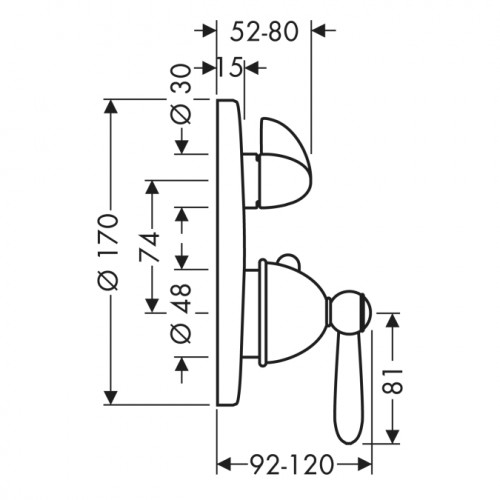 Змішувач з термостатом прихований (вбудований) Hansgrohe колекція Axor Carlton хром 17700000