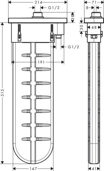 1) Зовнішня частина для змішувача Hansgrohe sBox з прямокутною розеткою