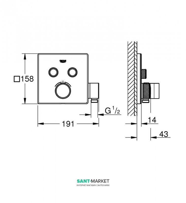 - зовнішня панель змішувача GROHE Grohtherm SmartControl