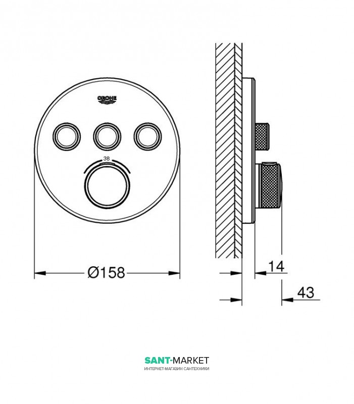 - зовнішня панель змішувача GROHE Grohtherm SmartControl