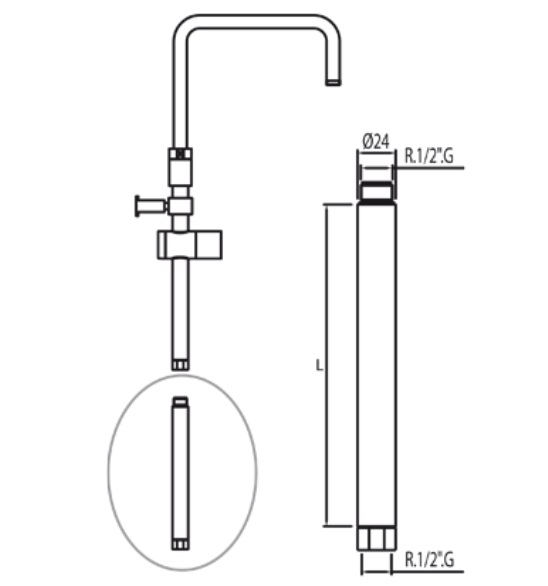 1) Удлинитель для душевой штанги Tres 65 см хром