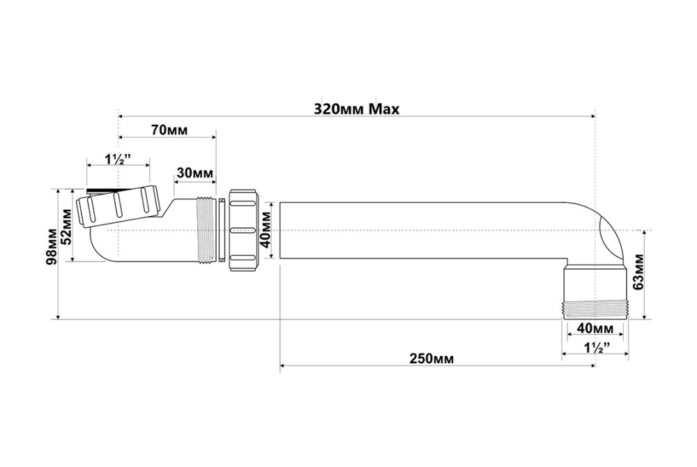 Удлинитель для сифона для кухонной мойки McAlpine L-320 мм 1½ х 1½ полипропилен белый
