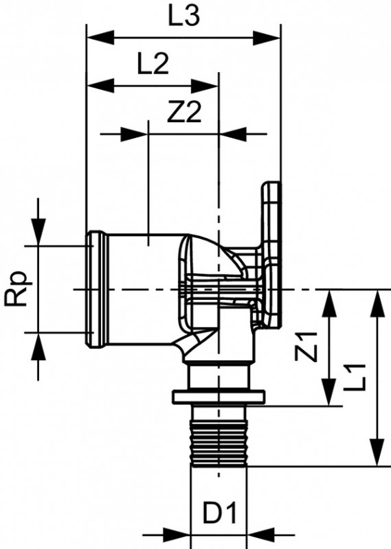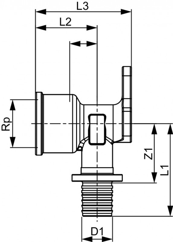 Угловое соединение TECE TECEflex с внутренней резьбой и настенным креплением 14хRp1/2 латунь