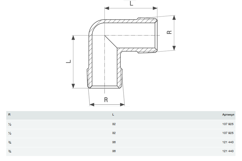 Угольник 90° Viega 1611 R¾ латунь 121440