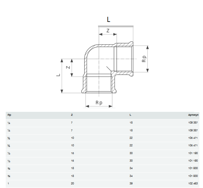 - Rp - внутренняя цилиндрическая резьба