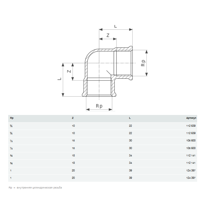 Отвод 90° Viega 1612 Rp1 латунь хромированная 124397