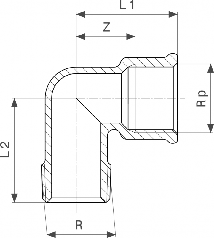 Отвод 90° Viega 1613 R¾хRp¾ латунь