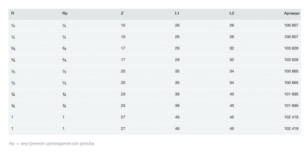 - Rp - внутренняя цилиндрическая резьба