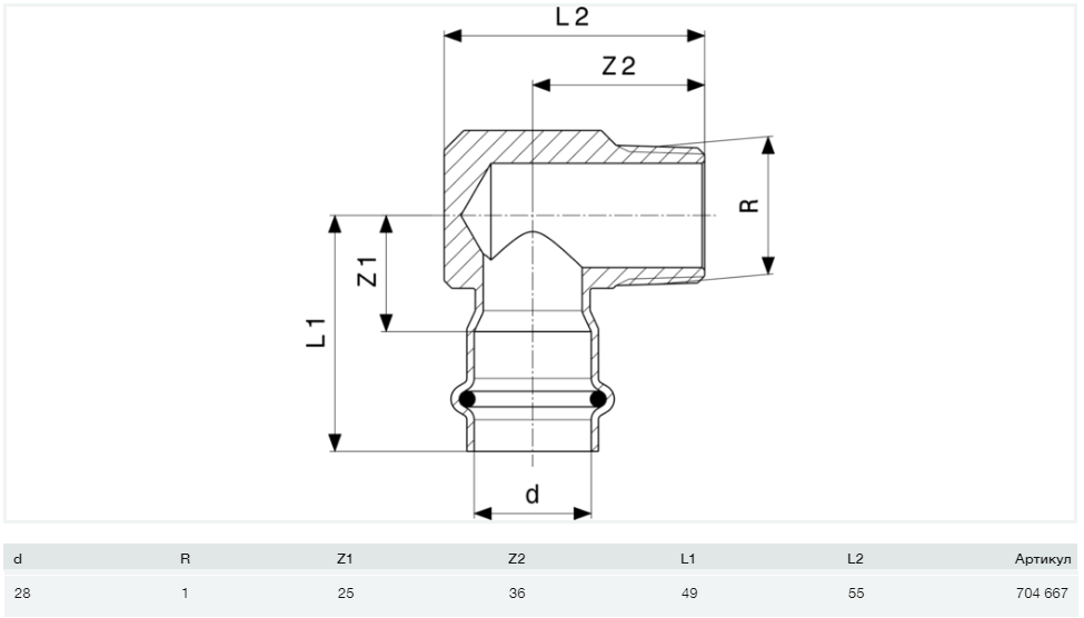 Угольник переходной 90° Viega Prestabo 1114.1 28хR1 нелегированная сталь 704667