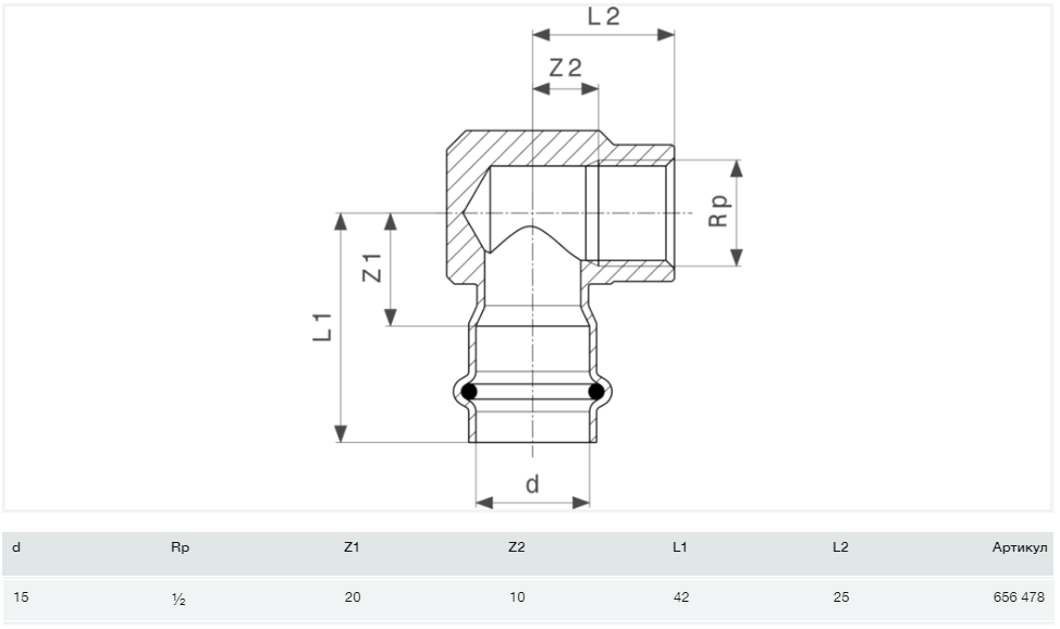 1) Угольник переходной 90° Viega Prestabo 1114.2 15хRp1/2 нелегированная сталь