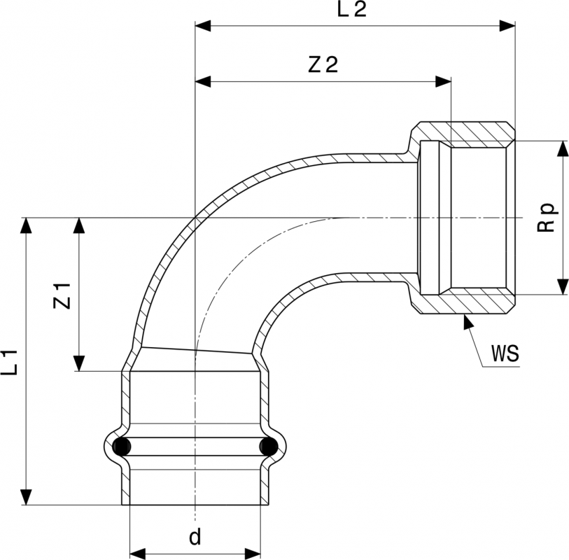 - Угольник переходной 90° Sanpress Inox модель 2314