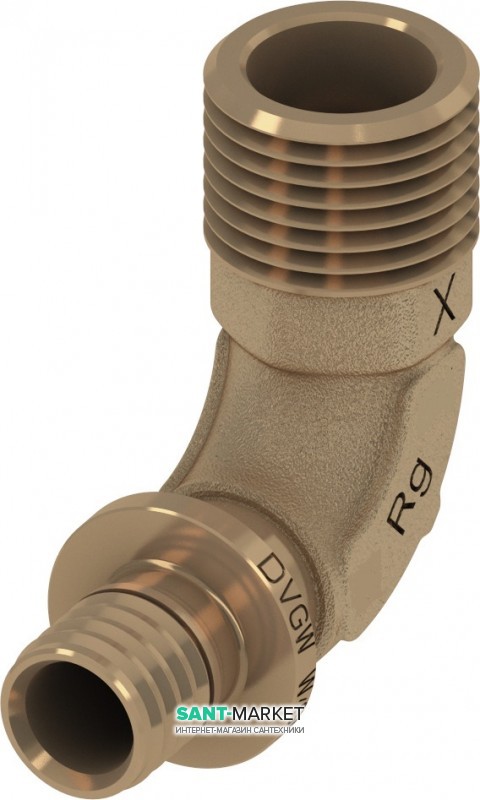 1) Уголок соединительный 90° с ниппелем TECE TECEflex внешняя резьба 20 х 1/2'' бронза