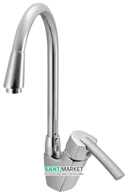 Однорычажные латунные смесители с низким поворотным изливом имеют внутри керамический картридж диаметром 35 мм, и 5 лет гарантии. Можно присмотреть хромированное или матовое покрытие. Интересным дизайном отличаются модели 11128 и 42128. Есть одна модификация смесителя с выдвижным душем. Подобная модель незаменима при установке мойки на две чаши. На кухне иногда целесообразнее ставить смесители с высоким изливом, если предстоит ставить в мойку, например, большие кастрюли. Рычаг может быть расположен как сверху, так и сбоку, а высота всего корпуса достигает в некоторых вариантах 32 см.