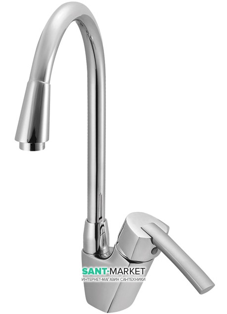 Однорычажные латунные смесители с низким поворотным изливом имеют внутри керамический картридж диаметром 35 мм, и 5 лет гарантии. Можно присмотреть хромированное или матовое покрытие. Интересным дизайном отличаются модели 11128 и 42128. Есть одна модификация смесителя с выдвижным душем. Подобная модель незаменима при установке мойки на две чаши. На кухне иногда целесообразнее ставить смесители с высоким изливом, если предстоит ставить в мойку, например, большие кастрюли. Рычаг может быть расположен как сверху, так и сбоку, а высота всего корпуса достигает в некоторых вариантах 32 см.