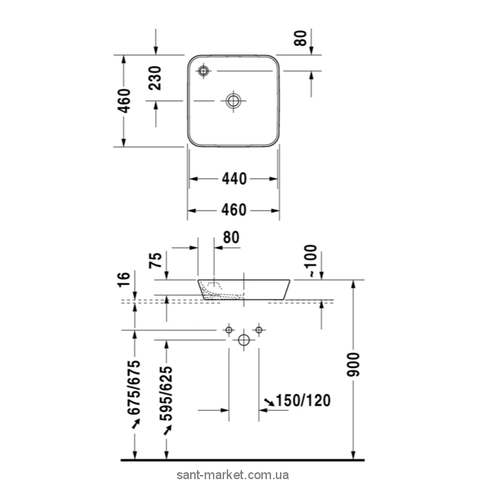Раковина для ванной накладная Duravit коллекция Starck 1 белая 2322460000