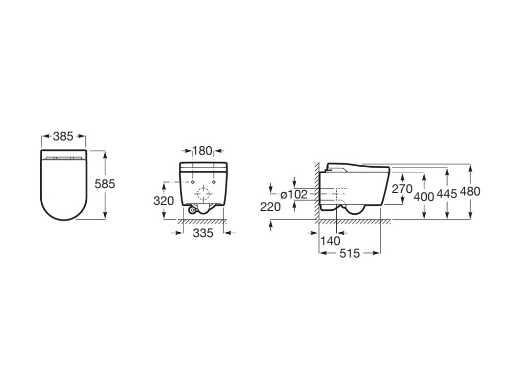 Унитаз-биде подвесной Roca Inspira Vortex In-Wash In-Tank 38,5х58,5 см с сиденьем и бачком сантехническая керамика белый A803094001
