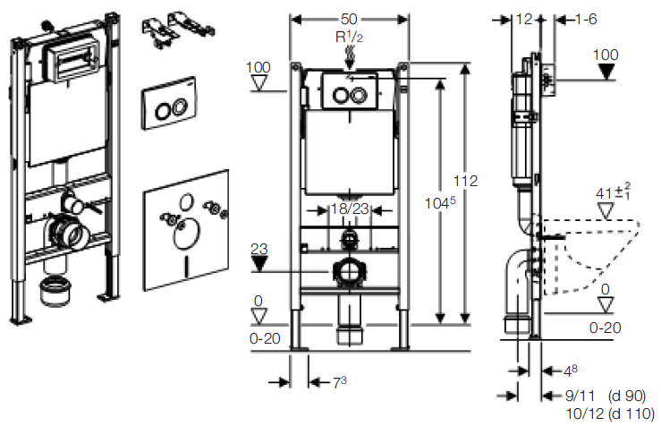 - Объем поставки: монтажная рамка, толкатели привода смыва, стопор вращения, крепежные элементы