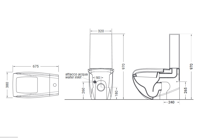 Чаша унитаза-компакта напольного Hidra Hi-Line 38х67,5 см санфаянс белый/черный HI12 012 bianco/nero