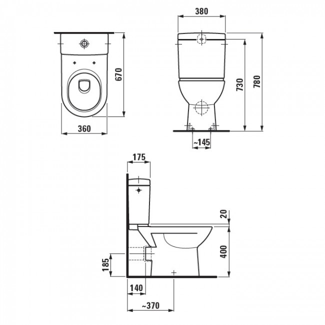 1) Унитаз Laufen Pro Pack 36х67 см